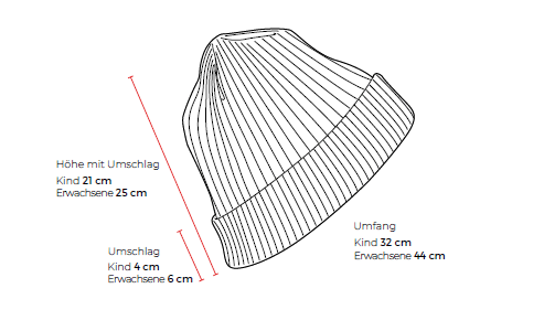 Die Mütze wird von unten nach oben im Halbpatent gestrickt, wodurch sie eine hübsche und volle Struktur erhält. Zuerst wird der Umschlag gestrickt, dann die eigentliche Mütze, bei der dann für den Kopf abgenommen wird.